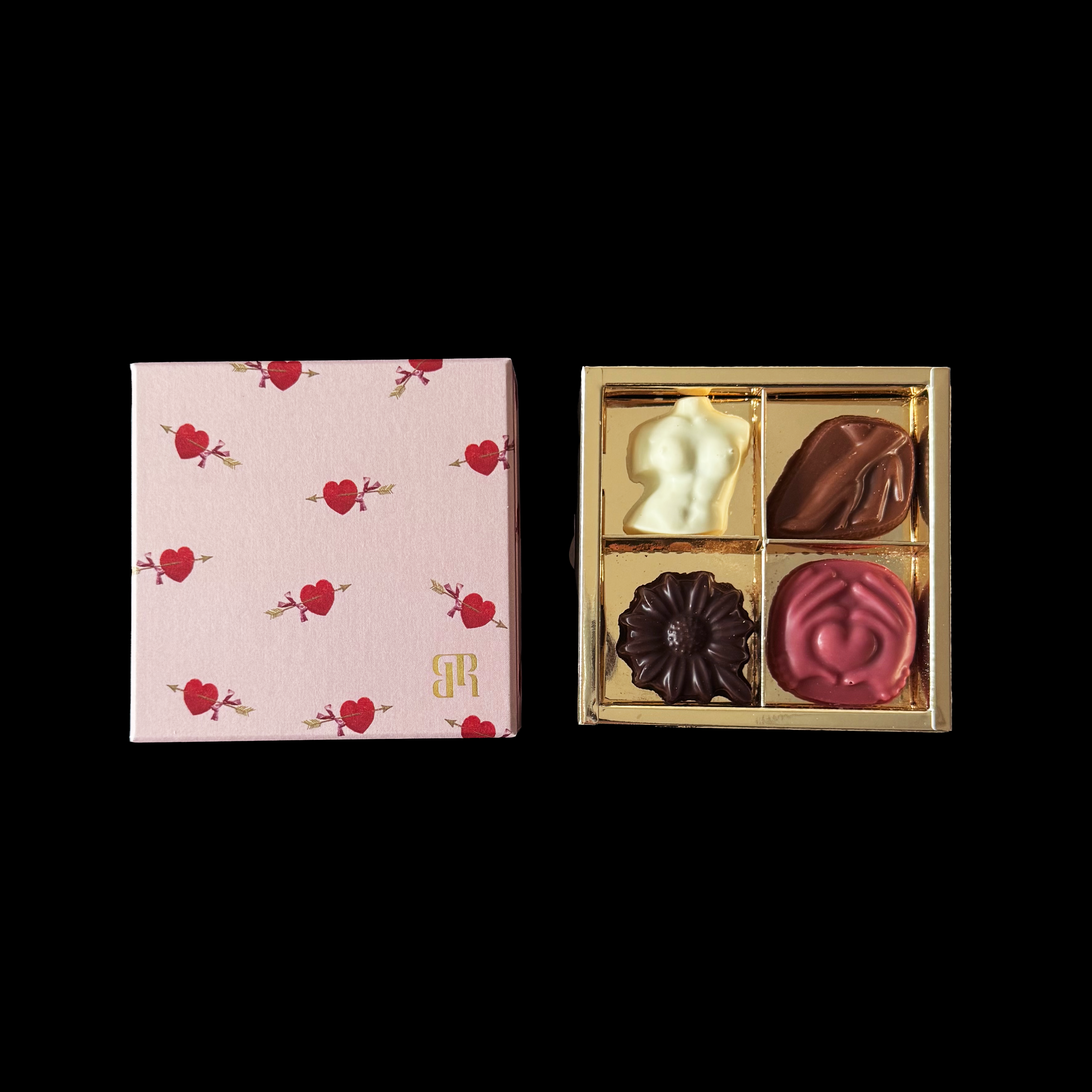 【カシス(LOVE)】チョコレート(砂糖、ココアバター、脱脂粉乳、全粉乳、カカオマス)(ベルギー製造)、カシスピューレ、リキュール、バターオイル/乳化剤、クエン酸、香料(一部に乳成分・大豆を含む)