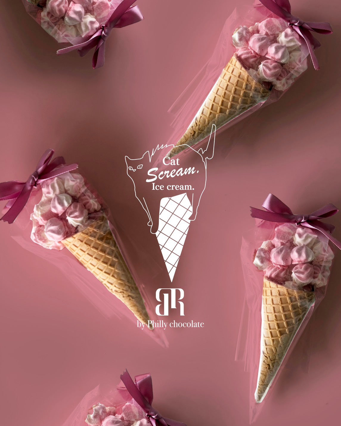 「静寂を破り、猫の感情が爆発するほどのおいしさ!」をテーマにした架空のアイスクリームショップ。